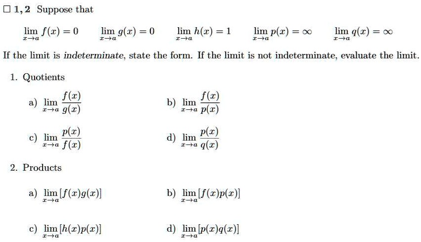 Solved 01 2 Suppose That Lim F C 0 Lim G X 0 1 0 170 Lim H Z 1 170 Lim P X 0 I A Lim Qr 3 I U If The Limit Is Indeterminate